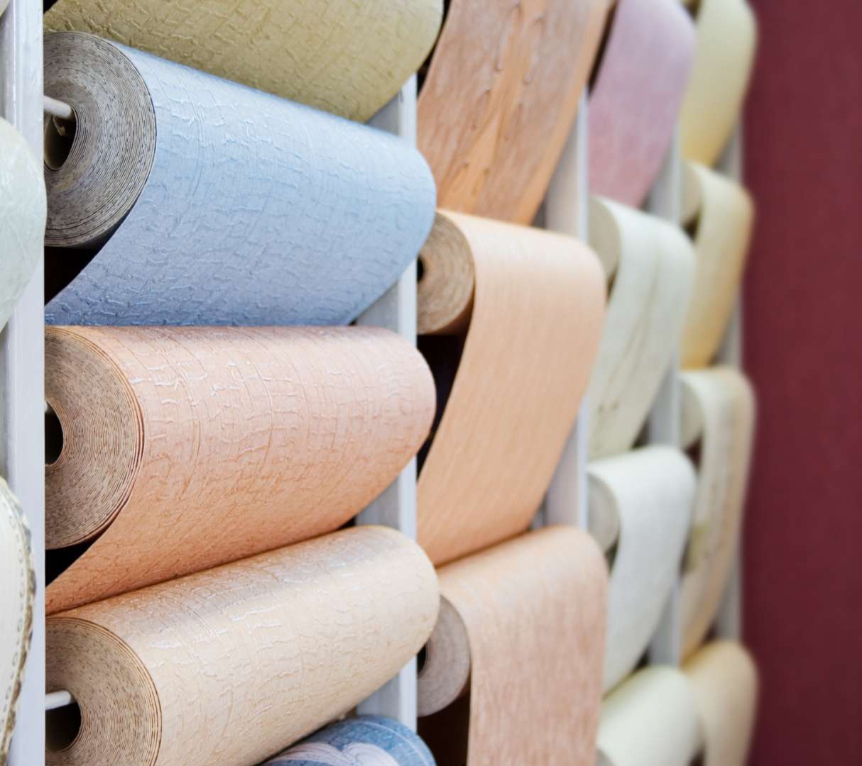 6畳(約10㎡前後)の部屋の壁紙は、一般的に7~8平方メートルあたり1ロールを目安に計算します。壁紙の幅は一般的に約92cm、長さは約10m程度のロールが多いため、6畳の壁面には6~7本程度必要です。壁の状態や柄合わせの有無によっては、余分に1本用意すると安心です。