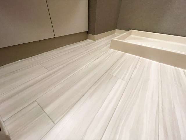 クッションフロアは表面がビニール素材でできており、足の皮脂や靴下、スリッパの色素が長時間付着すると黒ずみとして現れます。特にトイレや洗面所、キッチンなど水分や油汚れが多いエリアでは汚れが定着しやすく、放置すると掃除で落とすのが難しくなる可能性があります。家具の下や角も汚れが溜まりやすい場所です。